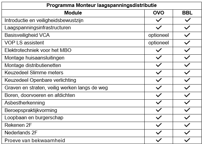 | Monteur laagspanningsdistributie OVO (3e leerweg) | € 10.500,00 excl. 21% btw |