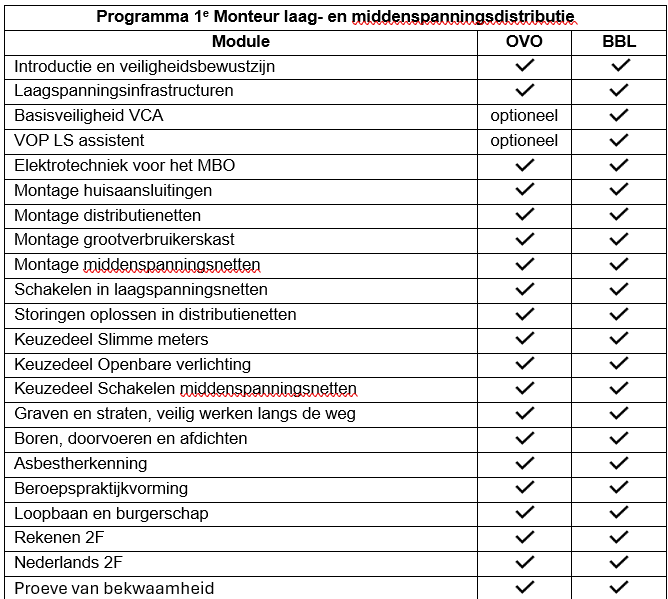 | 1e monteur laag- en middenspanningsdistributie (niveau 3) OVO (3e leerweg) | € 15.500,00 excl. 21% btw |